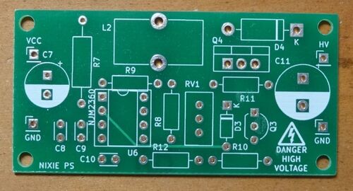 寄せ集め基板で最後に残っていたニキシー管用電源基板にやっと着手しました。 回路はDCDCコンバータ用NJM2360に外付けFETを付けた昇圧回路でネットでよく見かけるものです。FETのターンOFFを早めるためゲートに電荷引き抜きのPNPトランジスタが追加されてま…